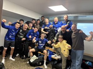 Vordere Reihe von links: Nicolai Henne, Mathias Schäfer, Michael Weisbeck, Elie Masanzambi-Loko, Julius Binner, Mattis Zorn, Rouven Stoll