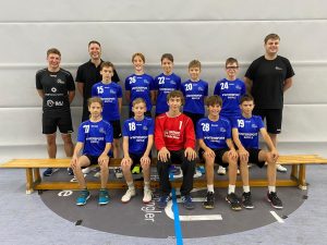 Hintere Reihe von links: Trainer Sebastian Schäfer, Trainer Simon Abt, Emil Klingenstein, Samuel Stephan, Adrian Abt, Aaron Gähr, Florian Burkhardt, Trainer Nils Biebl