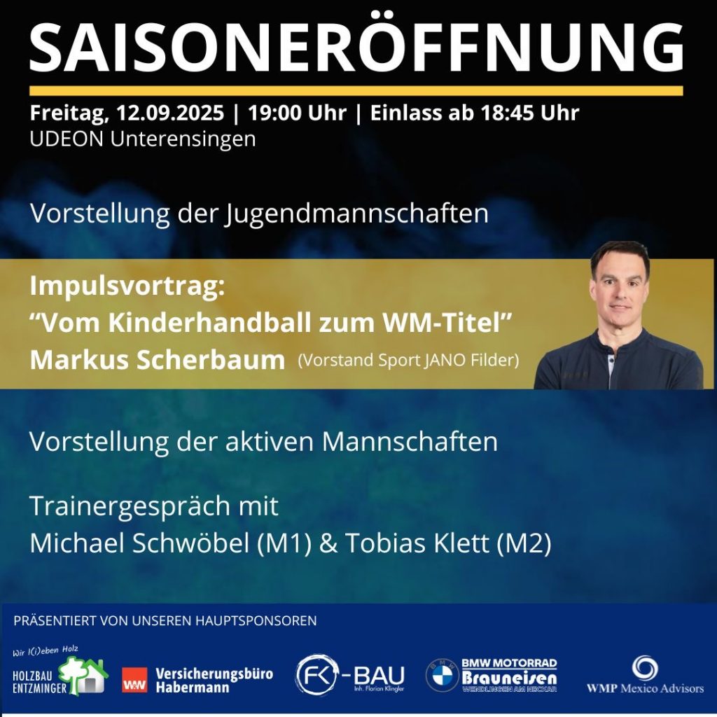 Dem Alter nach aufsteigend dürfen sich alle Jugendmannschaften in Trikots auf der Bühne präsentieren. Mit dem nachfolgenden Programmpunkt können wir ein echtes Schmankerl präsentieren: In Person von Markus Scherbaum wird der Experte des Kinderhandballs schlechthin zu Gast sein. Er war 2018 Mitgründer der bis heute äußerst erfolgreichen JANO Filder und referiert mittlerweile deutschland- wie europaweit über seine Herzensangelegenheit, die Nachwuchsarbeit im Handball. Markus hat es geschafft die Jugendabteilung der JANO, bestehend aus dem TSV Neuhausen und der HSG Ostfildern, deutschlandweit zu etablieren und stellt mit seinen Sprösslingen Linus Schmid, Max Heydecke und Nick Scherbaum drei Spieler der U19 Nationalmannschaft, die jüngst in Ägypten den Weltmeistertitel feiern konnten. Scherbaum berichtet von seiner initialen Idee der JANO, die Anfänge und Erfolge sowie seiner Vorstellung von erfolgreicher Nachwuchsarbeit. Final stellt er sich gerne Fragen aus dem Publikum.